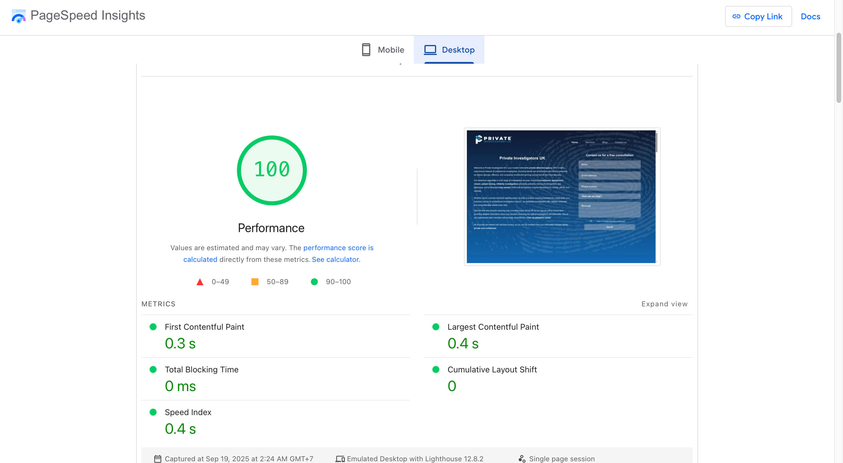 GSC screenshotPSI score of 100/100 demonstrates the advantage of bespoke code